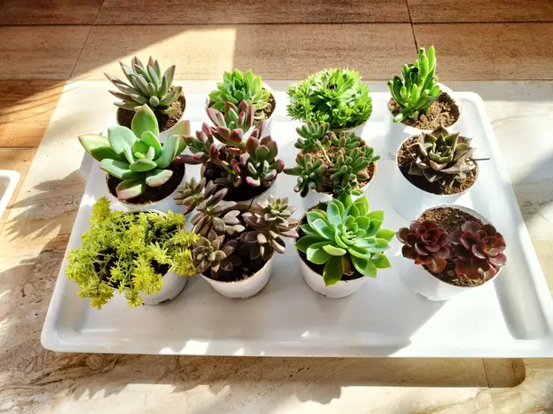 Beautiful set of three realistic artificial succulents in decorative cement pots. Perfect for shelves, desks, or as table centerpieces.